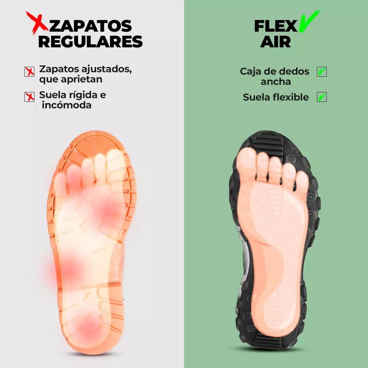 Con los zapatos Flex Air, eliges comodidad, pies saludables y una experiencia de caminata natural. Estos zapatos únicos te brindan la sensación de caminar descalzo mientras te ofrecen protección y soporte.